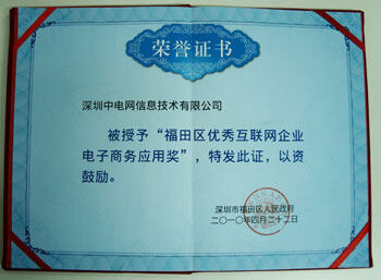 中電網被深圳福田區人民政府授予"福田區優秀互聯網企業電子商務應用獎"