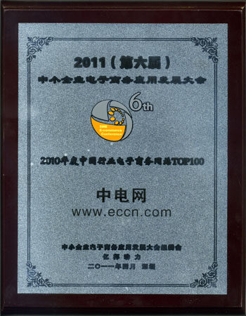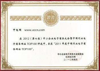 中電網榮獲第六屆中國行業電子商務網站”TOP100“榮譽稱號
