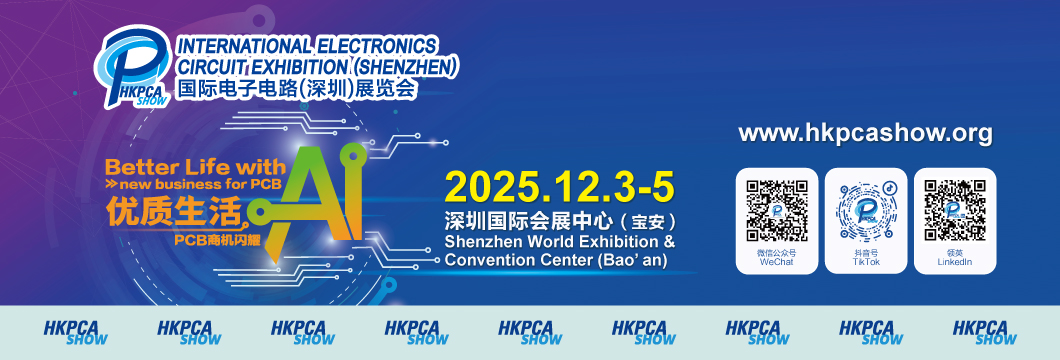 國(guó)際電子電路(深圳)展覽會(huì)(HKPCA Show)將聚焦AI+智能制造領(lǐng)域,以“優(yōu)質(zhì)生活·AI—PCB商機(jī)閃耀”為主題,于2025年12月3-5日在深圳國(guó)際會(huì)展中心(寶安)5、6、7及8號(hào)館盛大舉行,以AI技術(shù)驅(qū)動(dòng)PCB產(chǎn)業(yè)升級(jí)!展會(huì)亮點(diǎn)包括: ▶ 80,000m2的展覽面積,本屆展會(huì)新增兩大主題展區(qū),深化產(chǎn)業(yè)鏈上下游,九大展區(qū)共筑PCB完整產(chǎn)業(yè)鏈; ▶ 600+海內(nèi)外知名品牌參展,全方位展現(xiàn)線(xiàn)路板及電子組裝行業(yè)的最新設(shè)備及創(chuàng)新技術(shù); ▶ 買(mǎi)家群體覆蓋全球多個(gè)國(guó)家及地區(qū),助力展商精準(zhǔn)觸達(dá)目標(biāo)客戶(hù); ▶ 國(guó)際技術(shù)會(huì)議特邀PCB行業(yè)專(zhuān)家和知名學(xué)者解讀最新市場(chǎng)動(dòng)態(tài)和行業(yè)趨勢(shì); ▶ 豐富的同期活動(dòng),如高爾夫球公開(kāi)賽、歡迎晚宴等,拓展更多交流合作機(jī)會(huì)。